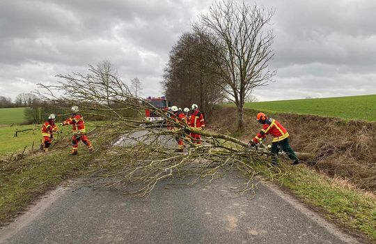 Zwischen Hornstorf und dem "Seekrug" galt es einen umgestürzten Baum von der Straße zu entfernen. Mittels Motorsäge war das schnell erledigt.