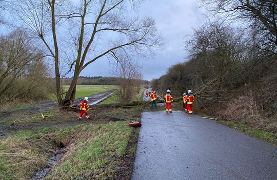 Das 2. Sturmtief namens "Zeynep" erreichte uns erst spät. Telefonisch wurden wir über mehrere auf der Straße liegende Bäume im Bereich Hornstorf informiert. Mittels Alarm-App konnten wir schnell Personal alarmieren und unsere 2 Einsatzfahrzeuge besetzen. Auf dem Rückweg sicherten wir noch in Groß Sarau einen Bauzaun.
