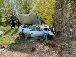 Im Einhäuser Einsatzgebiet war ein PKW auf freier Strecke gegen einen Baum geprallt.