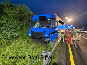 Ein LKW war in der Baustelle von der Fahrbahn abgekommen, wobei der linke Dieseltank leck geschlagen war.